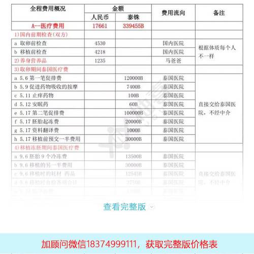 公立医院试管婴儿价格表| 项目 | 费用 (泰铢) |。|---|---|。| 卵巢刺激 | 20,000 - 30,000 |。| 取卵 | 15,000 - 20,000 |。| 体外受精 (IVF) | 50,